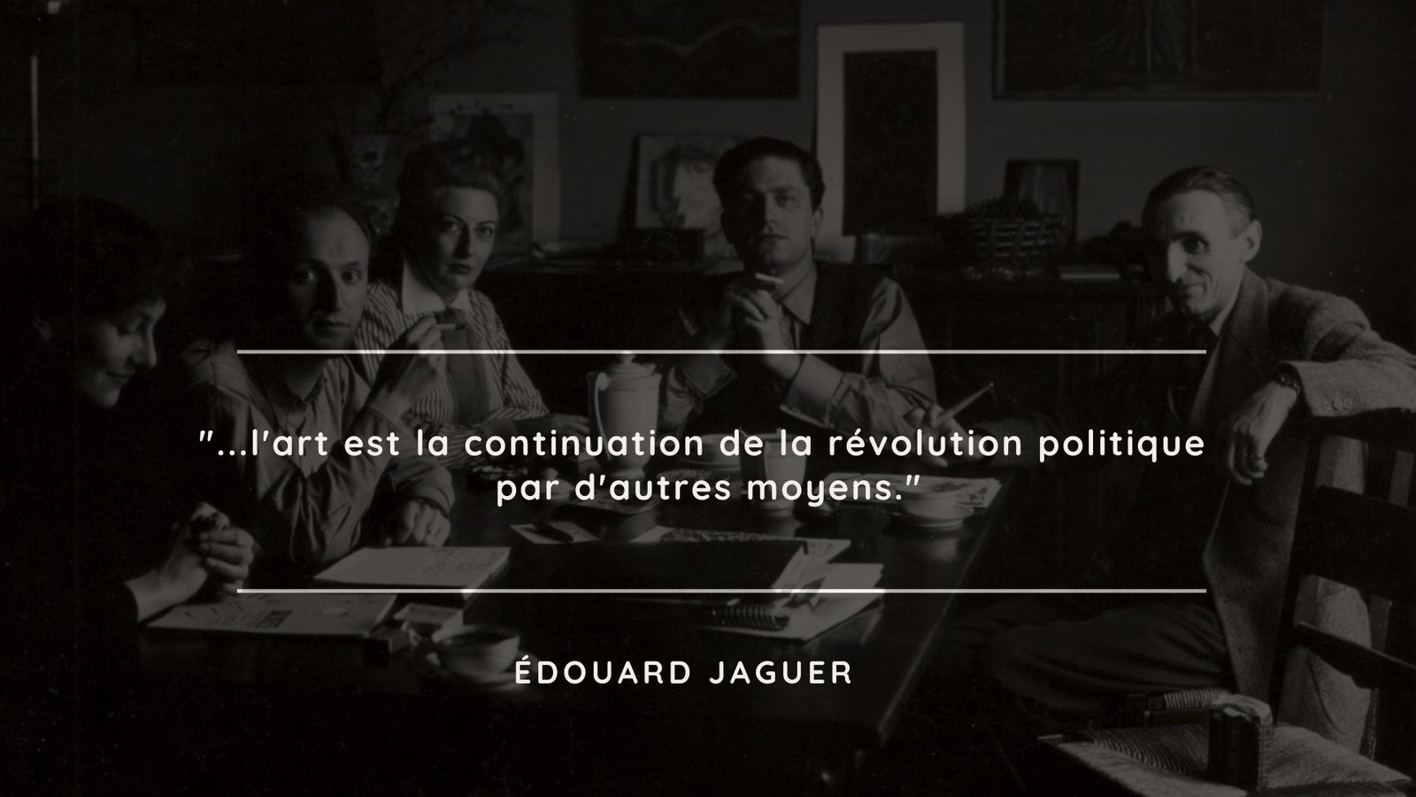 Édouard Jaguer naît à Paris le 8 août 1924. Très tôt, il découvre le surréalisme et la peinture non figurative. La peinture de František Kupka a alors pour lui l'effet d'une véritable révélation.
